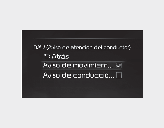Si selecciona "Alerta de partida del vehículo delantero", la función informará al conductor cuando el vehículo que esté delante inicie la marcha desde parado.