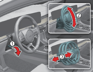 Réglez l'inclinaison (2) et la hauteur (3) du volant à votre convenance.