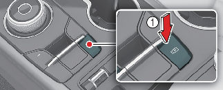 Appuyer sur le bouton Stationnement/Vue (1) en étant sur P (Stationnement), N (Point mort) ou D (Conduite) et une vitesse du véhicule inférieure à 10 km/h (6 mph)