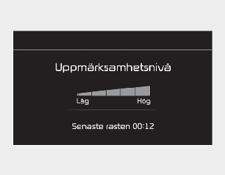 • Förarens uppmärksamhetsnivå visas på skalan mellan ett till fem. Ju lägre nivå, desto lägre är förarens uppmärksamhet.