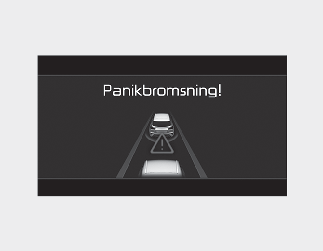 Varningsmeddelandet “Kör försiktigt” visas i panelen när systemet panikbromsar fordonet.