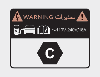 Efter att du har öppnat laddluckan ska du kontrollera laddningssymbolen längst ned på varningsetiketten.