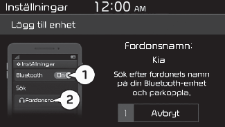 • Om lösenordsskärmen visas på Bluetooth-enhetens skärm, ange lösenordet "0000" som visas på systemskärmen.