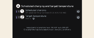 Se la temperatura finale (1) viene impostata con il cavo collegato, la temperatura della cabina verrà regolata in base alla temperatura finale dell'orario di partenza (senza perdita del livello di carica della batteria ad alta tensione). Con temperature ambientali molto basse, il riscaldamento pre-programmato aiuta a migliorare le prestazioni del veicolo elettrico, riscaldando il veicolo in anticipo.