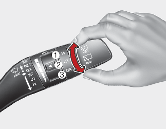 Ο διακόπτης του υαλοκαθαριστήρα και του ψεκαστήρα του πίσω παρμπρίζ βρίσκεται στο τέλος του μοχλοδιακόπτη των υαλοκαθαριστήρων και των ψεκαστήρων. Γυρίστε τον διακόπτη στην επιθυμητή θέση για να λειτουργήσει ο πίσω υαλοκαθαριστήρας και ο ψεκαστήρας.
