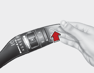 Ωθήστε τον μοχλό στην αντίθετη κατεύθυνση από εσάς για να ψεκάσετε υγρό από τον πίσω ψεκαστήρα και για να λειτουργήσουν ο πίσω υαλοκαθαριστήρας για 1-3 κύκλους. Η λειτουργία του ψεκασμού και των υαλοκαθαριστήρων θα συνεχιστεί μέχρι να αφήσετε τον μοχλό.