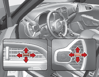 Οι αεραγωγοί εξόδου μπορούν να ανοίξουν ή να κλείσουν ξεχωριστά χρησιμοποιώντας τον περιστροφικό διακόπτη.