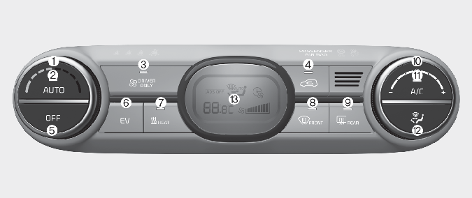 Το σύστημα θέρμανσης και ψύξης μπορεί να ρυθμιστεί χειροκίνητα πατώντας ή περιστρέφοντας τα κουμπιά εκτός από το κουμπί AUTO.