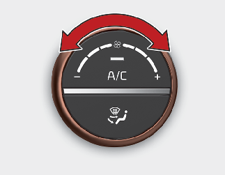 Όταν περιστρέφετε το κουμπί, η θερμοκρασία αυξάνεται ή μειώνεται κατά 0,5 °C / 1 °F. Όταν ρυθμίζεται στη χαμηλότερη ρύθμιση θερμοκρασίας, ο κλιματισμός λειτουργεί συνεχώς.