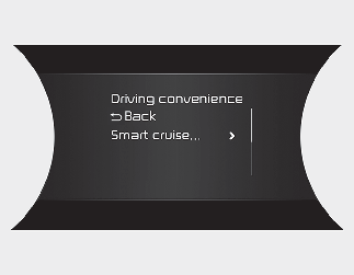 Με το όχημα σε λειτουργία, επιλέξτε στο ταμπλό οργάνων Ρυθμίσεις → Υποβοήθηση οδηγού → Διευκόλυνση οδήγησης → Smart Cruise Control ή στο σύστημα infotainment Ρυθμίσεις → Όχημα → Υποβοήθηση οδηγού → Διευκόλυνση οδήγησης → Smart Cruise Control, για να ορίσετε την απόσταση, την επιτάχυνση και την ταχύτητα αντίδρασης.