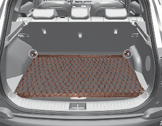 Pour éviter tout déplacement des objets contenus dans l’espace de chargement, vous pouvez utiliser les 4 fixations situées dans l’espace de chargement pour arrimer le filet à bagages. (selon l'équipement)