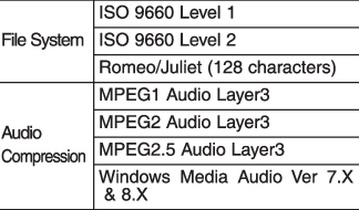عند تسمية ملفات بامتدادات MP3/WMA، فاكتب الاسم باللغة الكورية أو الإنجليزية فقط. (اللغات الكورية والإنجليزية والصينية مدعومة.)