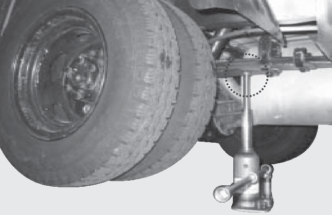 ضع الرافعة في موضع الرفع الأمامي أو الخلفي بالقرب من الإطار الذي تقوم بتغييره. ضع الرافعة كما هو مبين في الرسم التوضيحي.