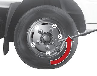 فك صواميل عروة العجلة عكس اتجاه عقارب الساعة حركة واحدة لكل عروة، لكن لا تقم بإزالة أي عروة حتى يرتفع الإطار عن الأرض.