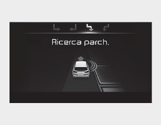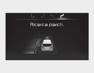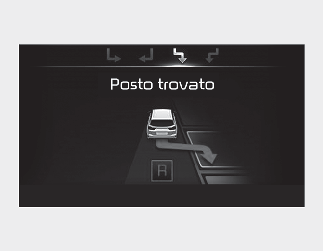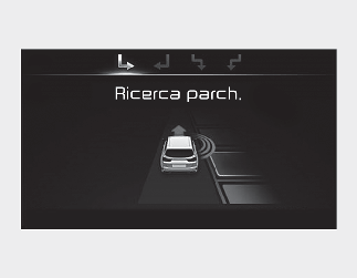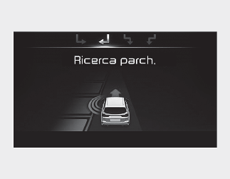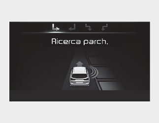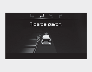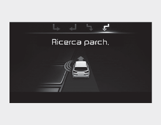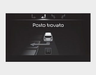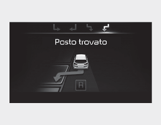 Se la funzione ha già riconosciuto lo spazio di parcheggio prima dell'attivazione dell'Assistenza parcheggio, si vedrà "Ricerca parcheggio" o "Posto trovato".