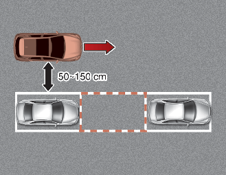 Guidare lentamente mantenendo una distanza di circa 50 cm ~ 150 cm dai veicoli parcheggiati. Se la distanza non viene rispettata, la funzione potrebbe non essere in grado di cercare lo spazio di parcheggio.