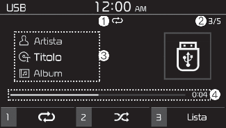 Se un dispositivo USB è già collegato al sistema, premere il pulsante [MEDIA] e premere il pulsante [1] per selezionare USB dalla finestra di selezione dei media.
