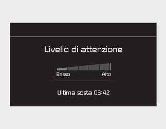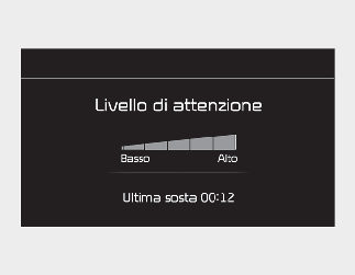 L'Avviso di attenzione del guidatore può suggerire di fare una sosta in funzione dello schema di guida o delle abitudini del guidatore, anche se questo non si sente affaticato.