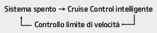 In una condizione in cui il controllo della velocità di crociera intelligente viene annullato automaticamente, il controllo della velocità di crociera intelligente non riprenderà anche se l'interruttore RES+ o SET- viene spostato.