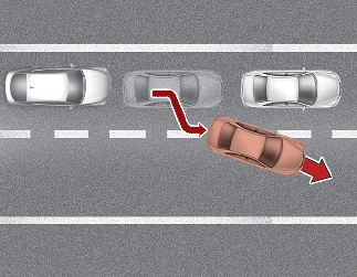 Lo Smart Cruise Control (Cruise Control intelligente) potrebbe non rilevare immediatamente il veicolo quando cambia corsia improvvisamente. In questo caso, occorre mantenere uno spazio di frenata sicuro e, se necessario, premere il pedale del freno per ridurre la velocità, al fine di mantenere la distanza di sicurezza.