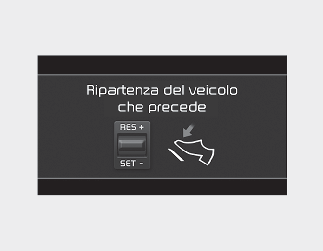 Se la modalità SCC è in funzione, il veicolo si arresta quando il veicolo davanti si arresta. Viene mostrato il messaggio sul cruscotto entro 3 secondi dall'arresto e la funzione sarà in standby.