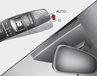 ---/AUTO* : Stierače budú pracovať prerušovanie s rovnakými intervalmi stierania. Použite tento režim v slabom daždi alebo hmle. Ak chcete zmeniť nastavenie rýchlosti, otočte gombíkom pre reguláciu rýchlosti.