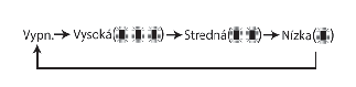 Zakaždým, keď stlačíte spínač, nastavenie teploty sedadla sa zmení nasledovne: