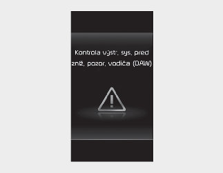 Ak výstraha pre zvýšenie pozornosti vodiča nefunguje správne, na prístrojovej doske sa zobrazí výstražné hlásenie „Skontrolovať systém výstrahy pre zvýšenie pozornosti vodiča (DAW)“. Ak k tomuto dôjde, odporúčame, aby vozidlo skontroloval autorizovaný predajca/servisný partner spoločnosti Kia.
