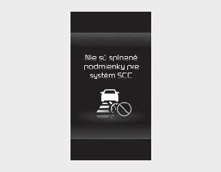 Ak stlačíte tlačidlo Driving Assist (Asistent jazdy), spínač RES+ alebo SET-, ak nie sú splnené prevádzkové podmienky funkcie, na prístrojovej doske sa objaví hlásenie „Smart Cruise Control conditions not met“ (Podmienky inteligentného tempomatu nie sú splnené) a zaznie zvukový signál.