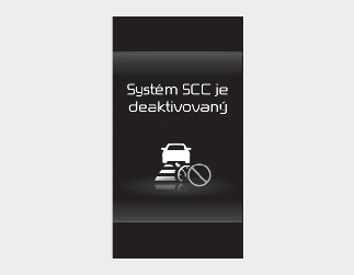 Ak je funkcia dočasne zrušená, na prístrojovej doske sa objaví výstražné hlásenie „Smart Cruise Control canceled“ (alebo „SCC (Smart Cruise Control) canceled“) (Inteligentný tempomat je zrušený (alebo SCC (Inteligentný tempomat) je zrušený)) a zaznie zvukový signál, ktorý upozorní vodiča.