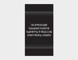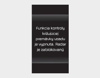 Ak k tomu dôjde, na prístrojovej doske sa zobrazí výstražné hlásenie „Rear Cross-Traffic Safety disabled. Radar blocked“ (Bezpečnosť križujúcich sa vozidiel vzadu je deaktivovaný. Radar je zablokovaný).