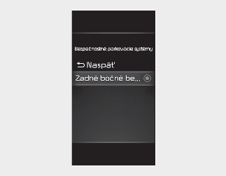 Keď je spínač zapaľovania alebo tlačidlo ENGINE START/STOP (štart/vypnutie motora) v polohe ON (Zap.), vyberte možnosť „DriverAssistance → Parking Safety → Rear Cross-Traffic Safety“ (Bezpečnosť pri parkovaní / Bezpečnosť križujúcich sa vozidiel vzadu) z ponuky nastavení, aby sa zapla bezpečnosť križujúcich sa vozidiel vzadu, a zrušte jej označenie, ak funkciu chcete vypnúť.