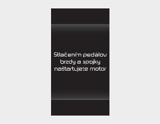 Úplne stlačte spojkový pedál a zaraďte prevodovku do neutrálnej polohy. Podržte pedál spojky a brzdy stlačený a súčasne stlačte tlačidlo ENGINE START/STOP (Štart/vypnutie motora) do polohy START (Štart). Ak sa stav zmení na ACC (Príslušenstvo), zobrazí sa na prístrojovej doske tak, ako v nasledujúcom okne s hlásením.