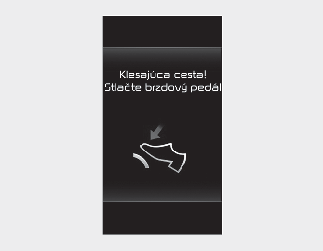 Toto výstražné hlásenie sa zobrazí, keď sa s vozidlom jazdí pomaly na svahu a vozidlo deteguje, že brzdový pedál nie je použitý.