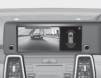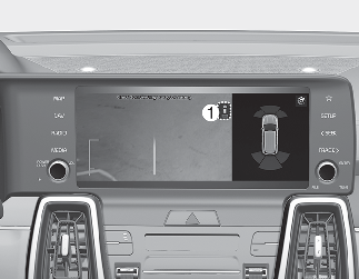 碰觸圖示 (1),螢幕上出現俯視圖顯示您車輛與後方車輛的距離。