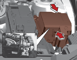 檢查引擎倉保險絲盒後,牢固安裝保險絲盒蓋,聽見咔嗒聲即可。