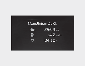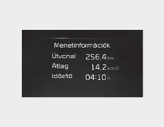 Ez a kijelző a megtett utat, az átlagos üzemanyag-fogyasztást és a vezetési időt mutatja.