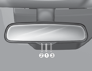 Pritisnite gumb »ON/OFF« (Vklop/Izklop) (1), da vklopite funkcijo samodejnega zatemnjevanja. Kontrolna lučka ogledala (2) bo zasvetila.
