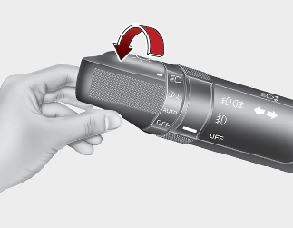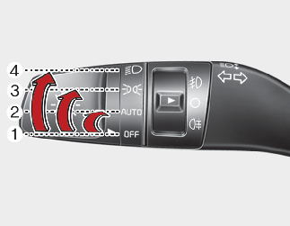 Z lučmi upravljate tako, da zavrtite vrtljivi gumb na koncu kontrolne ročice v enega od naslednjih položajev: