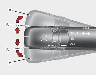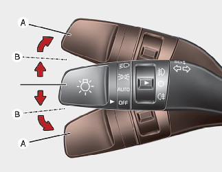 Za delovanje smernikov mora biti vključeno stikalo vžiga. Za vklop smernikov pomaknite ročico navzgor ali navzdol (A).