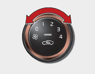 Vrtljivi gumb za uravnavanje hitrosti ventilatorja omogoča nastavitev jakosti pihanja zraka iz prezračevalnega sistema. Če želite spremeniti hitrost ventilatorja, zasukajte vrtljivi gumb v desno za višjo hitrost in v levo za nižjo.