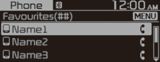 Pritisnite zaslon Phone (Telefon), zavrtite vrtljivi gumb [TUNE] na nadzorni plošči, da izberete Favourites (Priljubljeno) in nato pritisnite gumb.