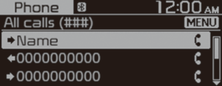 Pritisnite zaslon Phone (Telefon), zavrtite vrtljivi gumb [TUNE] na nadzorni plošči, da izberete Call history (Zgodovina klicev) in nato pritisnite gumb.