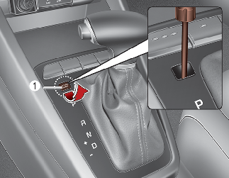 Prestavno ročico prestavite v nevtralni položaj [N] (nevtralno), medtem pa držite zavorni pedal in sočasno pritisnete na gumb [SHIFT LOCK RELEASE] (Sprostitev blokade prestavne ročice) ali z orodjem (npr. ploskim izvijačem) pritisnite v luknjo za dostop do [SHIFT LOCK RELEASE]. Zdaj se lahko vozilo premakne ob pritisku z zunanjo silo.