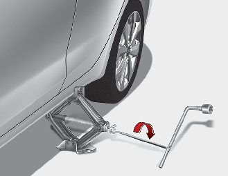 Spustite avtomobil na tla tako, da izvijač za kolesne vijake vrtite v nasprotni smeri urinega kazalca.