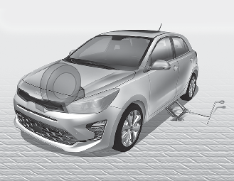 Nato postavite izvijač v položaj, kot je prikazano na sliki, in privijte vijake. Preverite, da doza sedi čez cel vijak. Ne stojte na ročici izvijača ali uporabljajte cevi za podaljševanje. Krožite po kolesu in privijte vsak vijak, da bodo vsi zatesnjeni. Nato še enkrat preverite zategnjenost vijakov. Po zamenjavi koles morajo sistem pregledati v servisni delavnici. Podjetje Kia priporoča, da se obrnete na pooblaščenega prodajalca/serviserja vozil Kia.