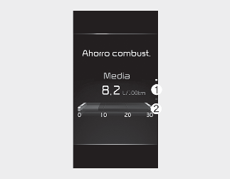 En este modo se visualiza el ahorro instantáneo de combustible durante los últimos segundos cuando el vehículo circula a más de 8 km/h (5 mph).