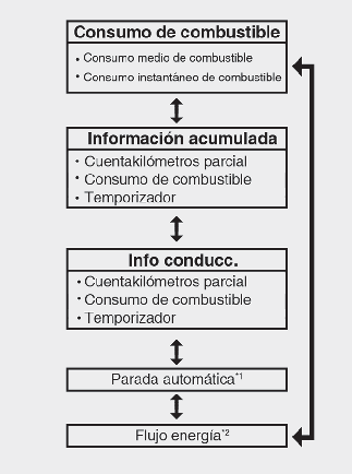 En este modo se visualiza el tiempo transcurrido desde la parada automática con el “sistema de apagado y arranque en ralentí”. Para obtener más información, consulte Más detalles.