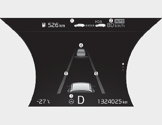 전방 차량 유무 및 설정된 차간거리 단계가 표시됩니다.