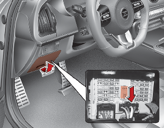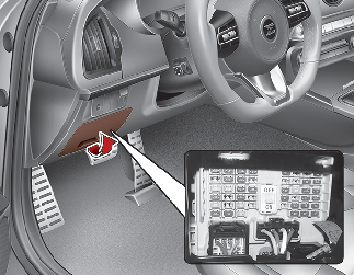 운전석 실내 퓨즈박스에 위치한 퓨즈 스위치는 항상 「ON」 위치에 두십시오. 「OFF」로 위치 시킬 경우 오디오, AVN, 시계와 같은 시스템을 재설정해야 할 경우가 발생할 수 있으며 리모컨 키, 스마트키 작동에 제한을 줄 수 있습니다.